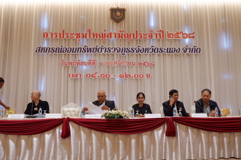 วันพฤหัสบดีที่ 6 พฤศจิกายน พ.ศ. 2568 นายอรรถชัย จันทร์เจริญ สหกรณ์จังหวัดระนอง มอบหมายให้ นางสาวปัทมา รัตนวรรณ ผู้อำนวยการกลุ่มตรวจการสหกรณ์ พร้อมด้วยนายมนชัย ใจชื่น นิติกรปฏิบัติการ นางสาวมัทนา ไวยกิจ และนางสาวนิธิพร คงทอง นักวิชาการสหกรณ์ปฏิบัติการ กลุ่มส่งเสริมสหกรณ์ 1 เข้าร่วมประชุมใหญ่สามัญประจำปี สำหรับปีบัญชีสิ้นสุดวันที่ 30 กันยายน 2568 สหกรณ์ออมทรัพย์ตำรวจภูธรจังหวัดระนอง จำกัด ณ ห้องประชุมเฮอริเทจแกรนด์ คอนเวนชั่น อำเภอเมือง จังหวัดระนอง สหกรณ์มีสมาชิก 701 คน ทุนดำเนินงาน 783,346,662.68 บาท กำไรสุทธิ 38,115,340.09 บาท จัดสรรเงินปันผล ร้อยละ 5.80 และจัดสรรเงินเฉลี่ยคืนร้อยละ 10 โดยการประชุมครั้งนี้ได้ดำเนินการไปตามระเบียบวาระ ทั้งนี้ได้แนะนำให้สหกรณ์ ดำเนินงานด้วยความโปร่งใส มีระบบบริหารการจัดการที่ดีเหมือนที่ผ่านมา ส่งผลให้สหกรณ์มีผลกำไรเพิ่มขึ้นในทุกปี ทำให้สมาชิกได้รับผลประโยชน์เพิ่มมากขึ้นในรูปแบบของเงินปันผลและเงินเฉลี่ยคืน รวมถึงแนะนำให้สมาชิกตรวจสอบยอดเงินฝาก เงินกู้ และทุนเรือนหุ้น ผ่านทางเว็บไซต์ของสหกรณ์ รักษาระดับความเข้มแข็งให้อยู่ระดับชั้น 1 อย่างต่อเนื่อง และแนะนำให้สหกรณ์ทบทวนแผนกลยุทธ์/แผนโครงการให้สอดคล้องต่อบริบทและความเหมาะสมต่อการปฏิบัติงานของสหกรณ์